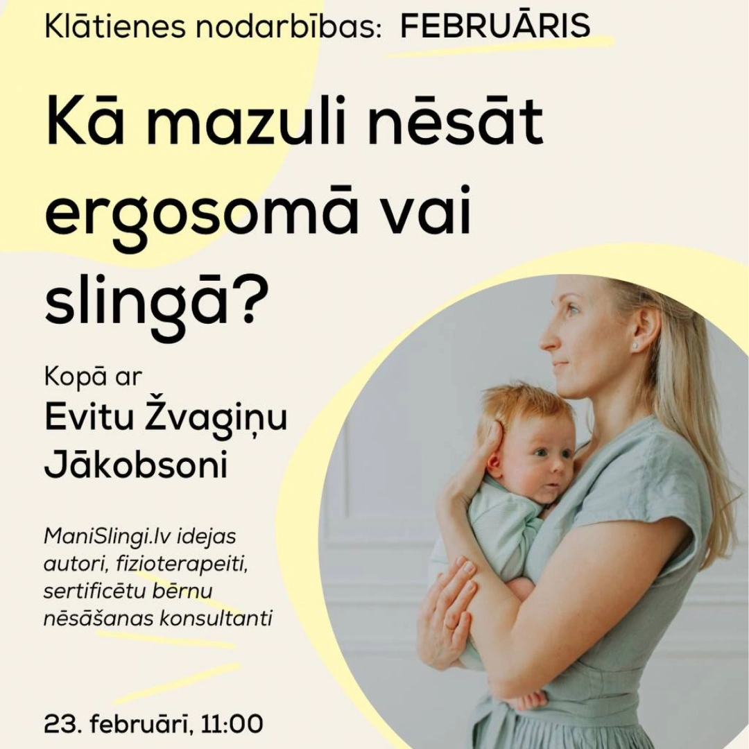 Aicinām uz praktisku un izglītojošu nodarbību par bērna nēsāšanu slingā un ergonomiskajā somā.